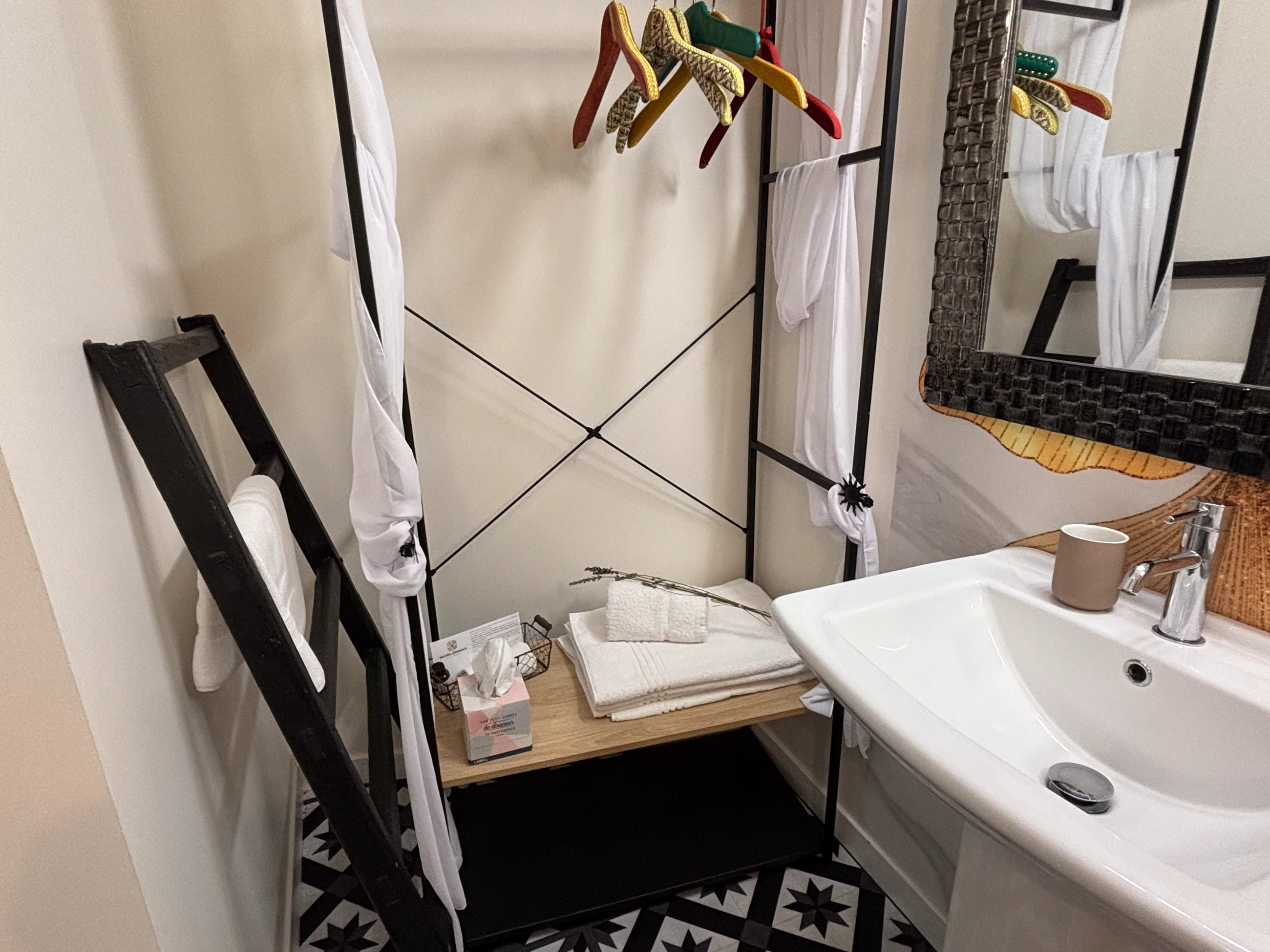 Hikers, cyclists, couples, or families with older children, this room will meet your needs for an overnight stay in Saint-Estephe. Simple and comfortable, it features two twin beds and a separate bathroom with a private shower, bathtub, and toilet.